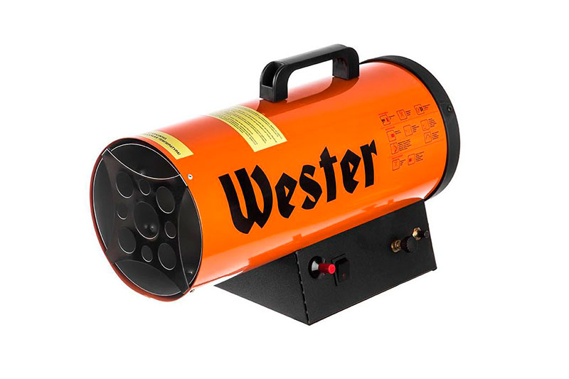 WESTER TG-20 – газовая тепловая пушка высокой мощности. Подойдёт для больших проветриваемых помещений со слабой теплоизоляцией: ангаров, складов, цехов, производственных помещений и строительных объектов.
