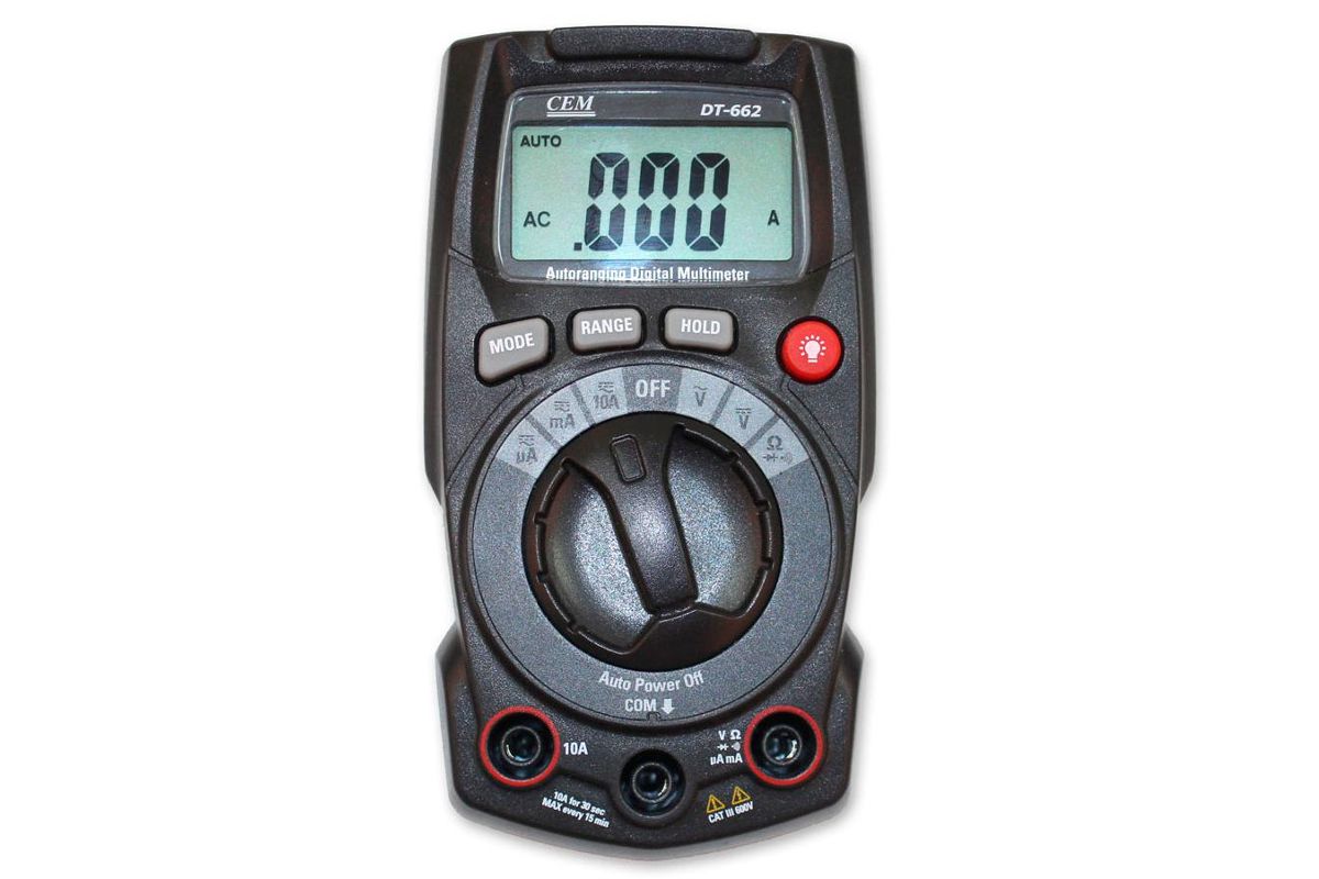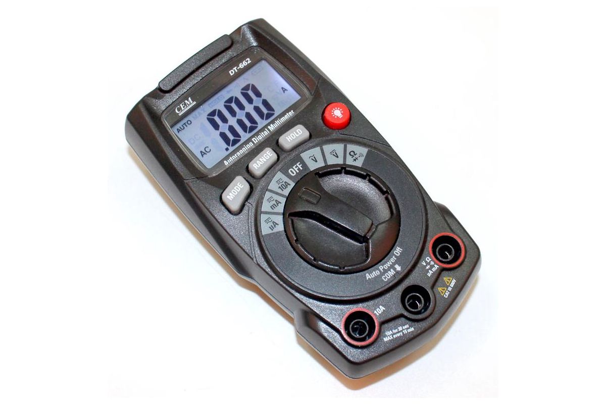 Мультиметр CEM DT-662 – бытовой прибор для измерения напряжения, сопротивления, постоянного и переменного тока. Пригодится для диагностики электрических приборов и соединений: чтобы проложить проводку, установить освещение или проверить батареи.