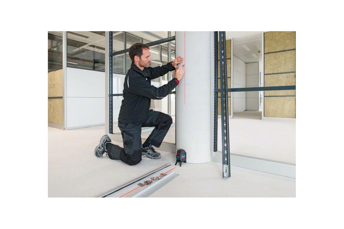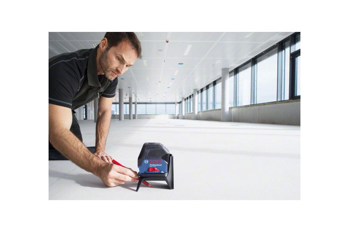 Комбинированный лазерный нивелир (линейный + точечный), проецирующий горизонтальную и вертикальную плоскости, а также 2 точки отвеса. Имеет удлиненную проекцию вертикальной линии.