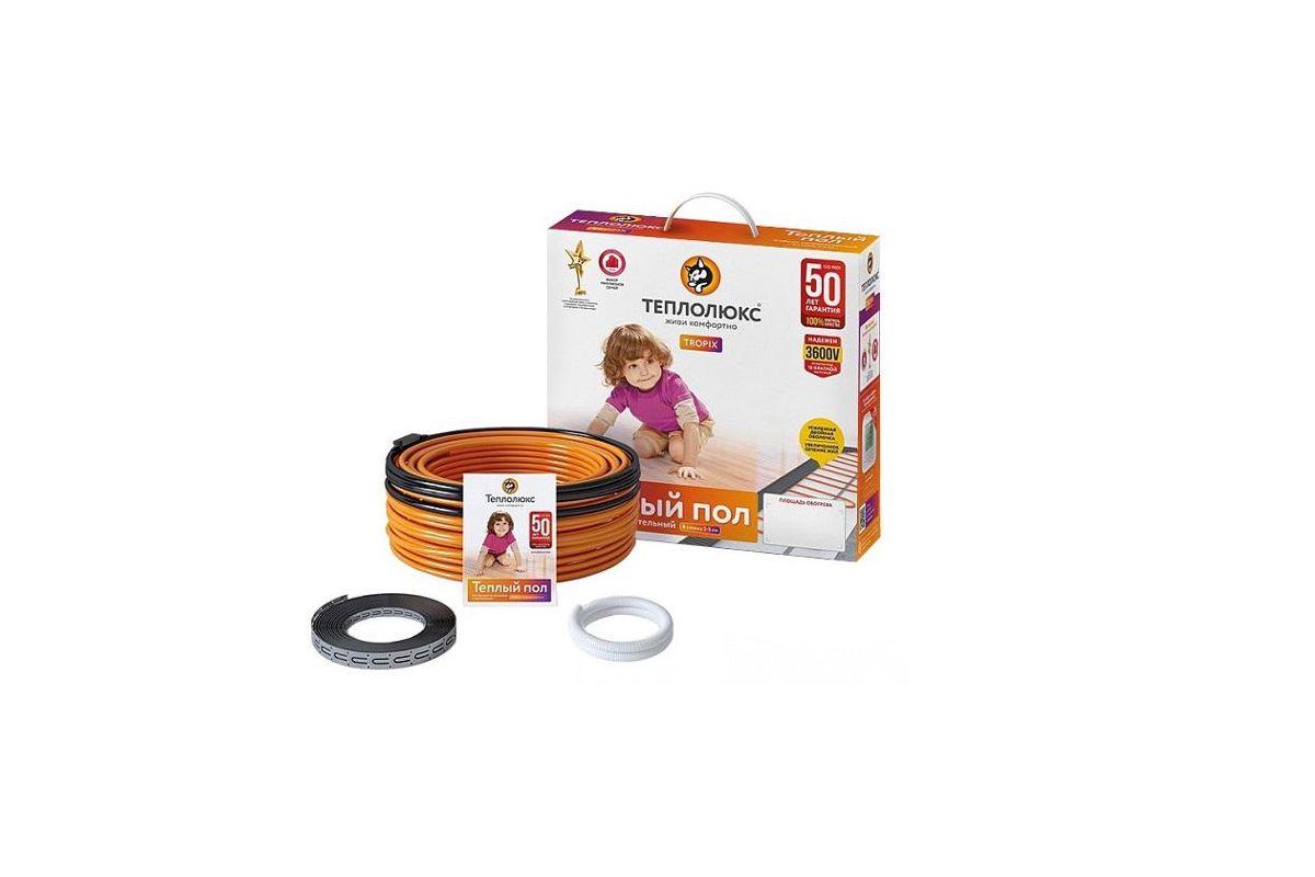 Нагревательные секции теплого пола Теплолюкс Tropix представляют собой кабельную систему обогрева на основе двухжильного экранированного нагревательного кабеля резистивного типа соединенного специальными переходными муфтами с холодным проводом питания. Длина холодного питающего проводника 2 метра. Длина греющей секции этой модели составляет 118 метров, а минимальный радиус изгиба кабеля при укладке должен быть не менее 50 мм. Высота потолков в обогреваемом помещении должна быть не более 4 метров. Наличие монтажной ленты в комплекте товара значительно упрощает монтаж. Наличие экранирующей жилы уменьшает электромагнитное излучение.